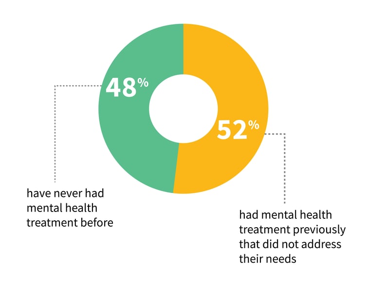 Half of people who started BEACON therapy never had mental health treatment before, which many can't access due to barriers such affordability, navigation stress, limited availability of professionals, and stigma. However, many users came to BEACON having had mental health treatment before, indicating an unmet need.![]()